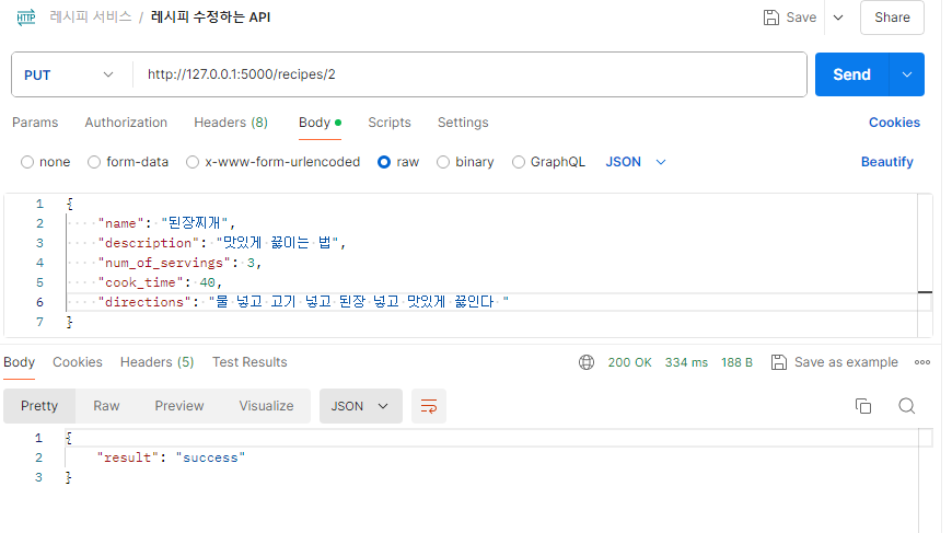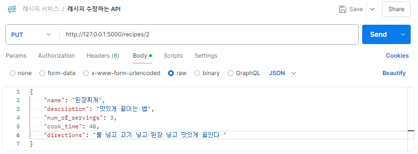 ( recipes/2 ) ์ฆ, id = 2์ธ ๋ฐ์ดํฐ๋ฅผ ์๋์ ๊ฐ์ด ์์ ํ๋ ค๊ณ ํ๋ค.