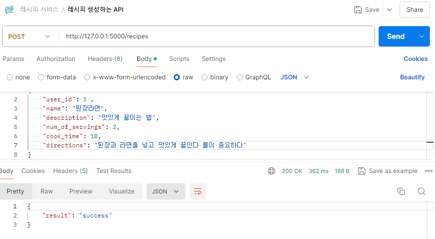 Postman GET์ Request๋ Query String(Query Parameters)์ ์ฌ์ฉํ๋ค- offset : 0- limit : 25 DB ์ค๊ณํ๊ธฐ ์ฝ๋ ์ ๋ ฅํ๊ณ ์คํํ๊ธฐ (๋น๋ฐ๋ฒํธ ๋ถ๋ถ ์์ ํด์ ์ ๋ ฅํ๋ค)-- recipe_db ์๋ง ์ ์ฉ์ผ๋ก ์ ์ํ ์