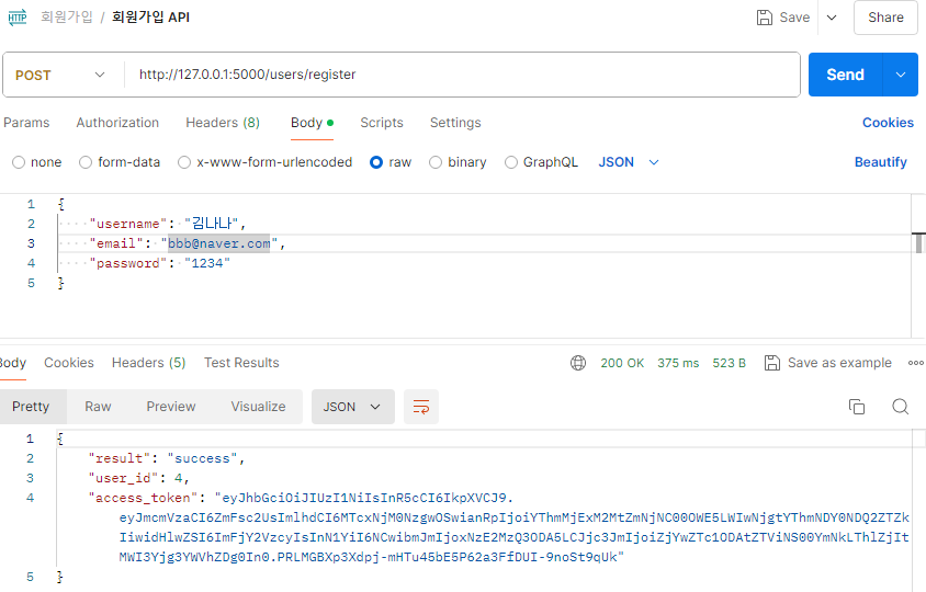 ์ด๋ฉ์ผ ํ์์ด ์ฌ๋ฐ๋ฅธ์ง ํ์ธํ๊ธฐ ์ํด ์ฌ์ฉํ๋ ๋ผ์ด๋ธ๋ฌ๋ฆฌ ์ค์น pip install email-validatorpip install passlibpip install psycopg2-binary DB์ postman์ ์ฐ๋ํ๋ ๋ฐฉ๋ฒ์ ์๋ ๊ธ์ ์ฐธ๊ณ ํ๋ค https://codebunny